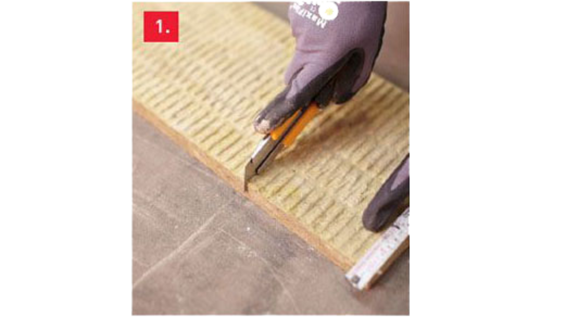 1. Eristelevyjen leikkaamiseen voi käyttää mattoveistä, sahaa tai pyörösahanterää. Käytä apuna linjuria.